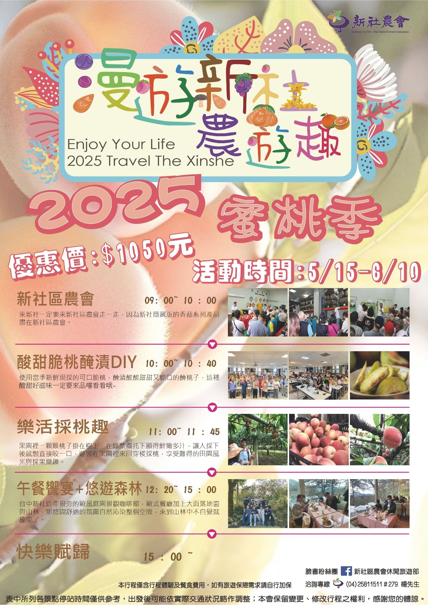 機關團體報名請洽「新社區農會 旅遊部」